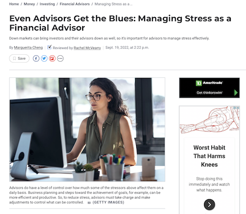 US News & World Report: “Even Advisors Get the Blues: Managing Stress as a Financial Advisor”